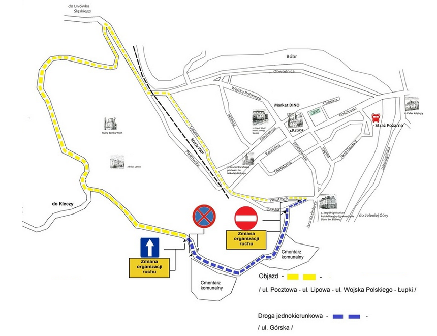 Mając na uwadze zbliżające się uroczystości Wszystkich Świętych informujemy, że w terminie: 30 października (czwartek) - 3 listopada 2025 r. (poniedziałek) na ul. Górskiej we Wleniu wprowadzona będzie czasowa zmiana organizacji ruchu, która ma umożliwić swobodny i bezkolizyjny przejazd pojazdom.
