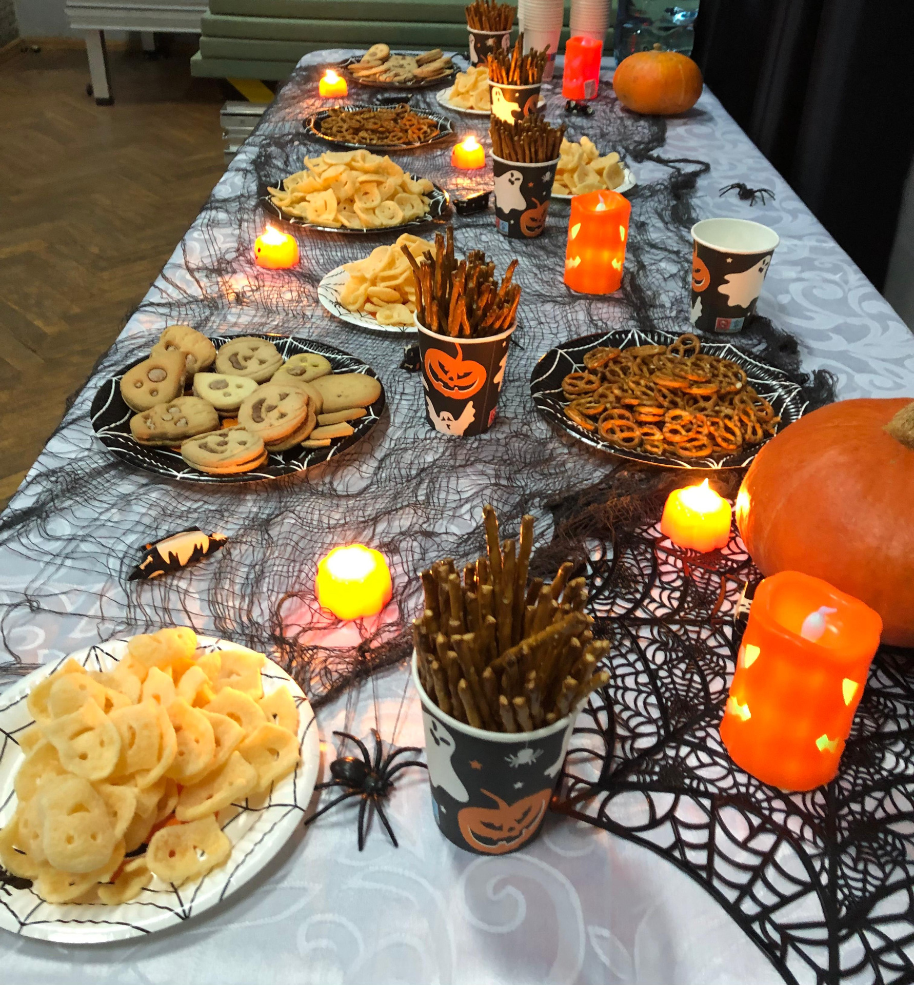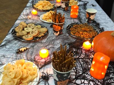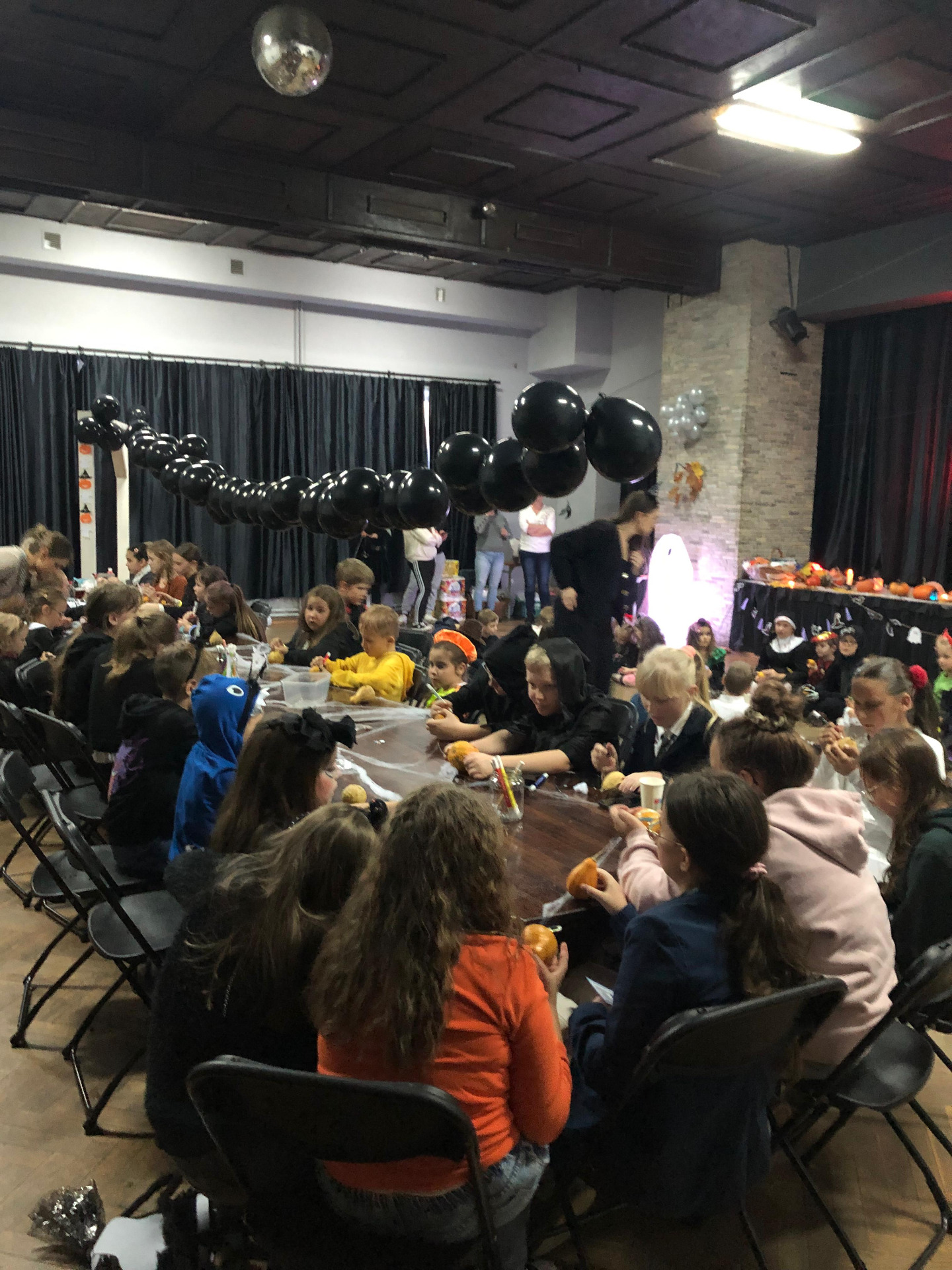 Pierwsza zabawa rozpoczęła się w zupełnych ciemnościach, w obecności podświetlanych ozdób halloweenowych – z latarkami w dłoniach mali odkrywcy szukali ukrytych cukierków.