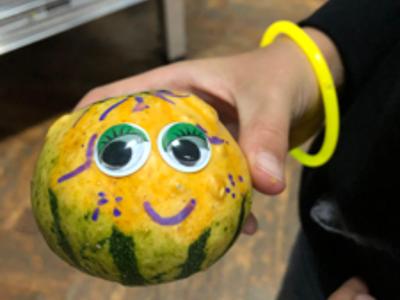 Przy warsztatowym stole mali artyści malowali i ozdabiali dynie oraz mandarynki, tworzyli własne girlandy i halloweenowe dekoracje.