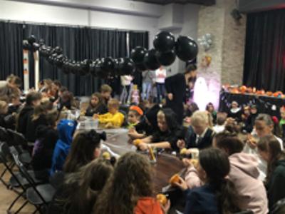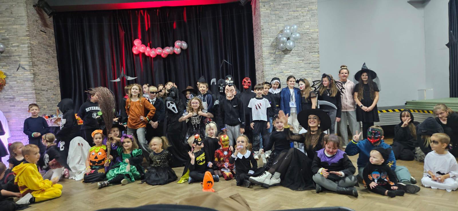 Dzieci z ogromnym zaangażowaniem uczestniczyły w konkurencjach i zabawach zespołowych, a na zakończenie wszyscy mogli wspólnie obejrzeć seans filmowy w halloweenowym klimacie.