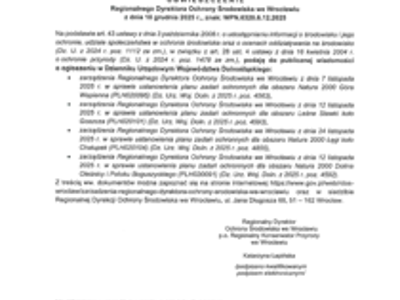 Informujemy o obwieszczeniu Regionalnego Dyrektora Ochrony Środowiska we Wrocławiu.