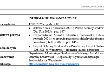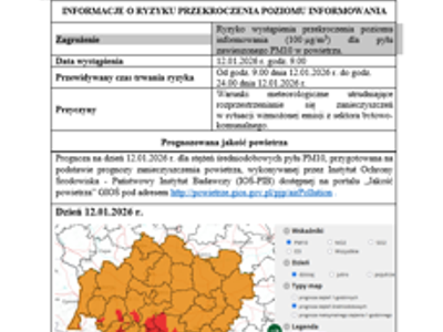 7 Powiadomienie o ryzyku wystąpienia przekroczenia poziomu informowania na podstawie prognoz 12.01.2026