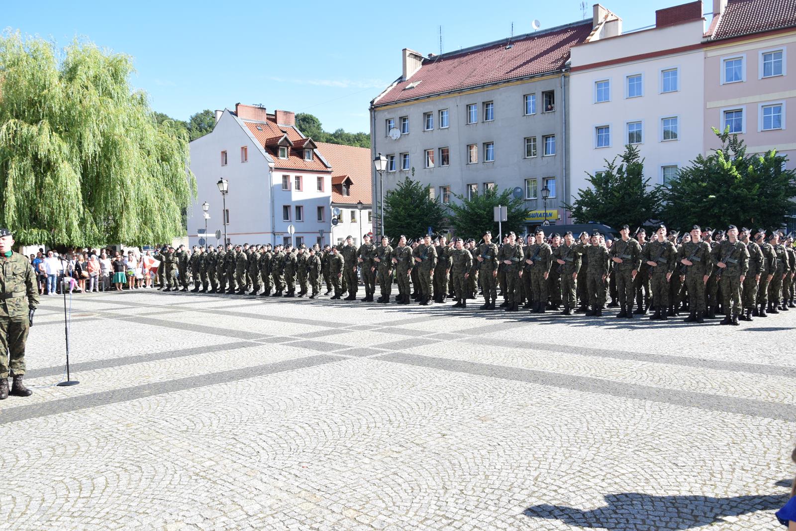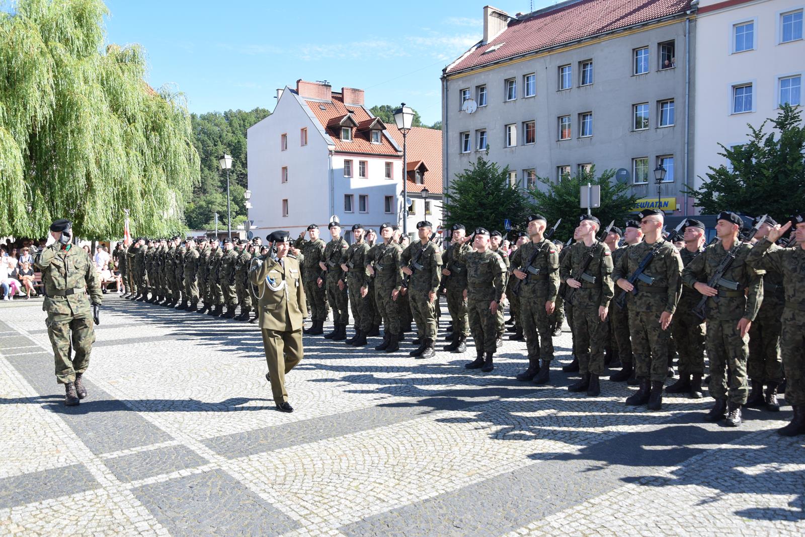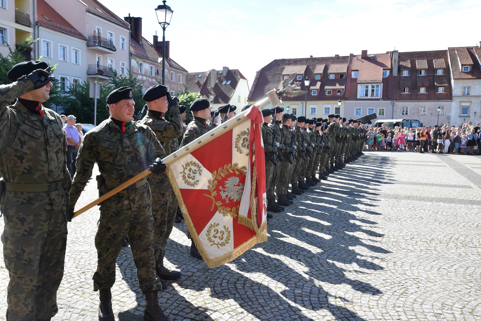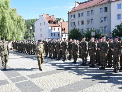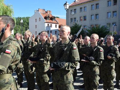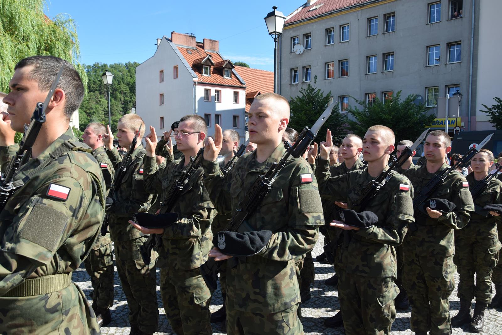 Po intensywnym okresie podstawowego szkolenia – pierwsza ważna uroczystość – uroczysta przysięga wojskowa. W dniu dzisiejszym 6 lipca na rynku miejskim we Wleniu w obecności zaproszonych gości, rodziców i przyjaciół 66 elewów dobrowolnej zasadniczej służby wojskowej piątego tegorocznego turnusu zostało pełnoprawnymi kandydatami na żołnierza zawodowego. Jest to niewątpliwie jedno z najważniejszych wydarzeń w życiu każdego żołnierza.
