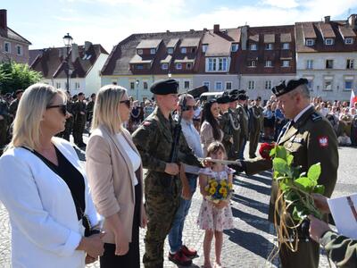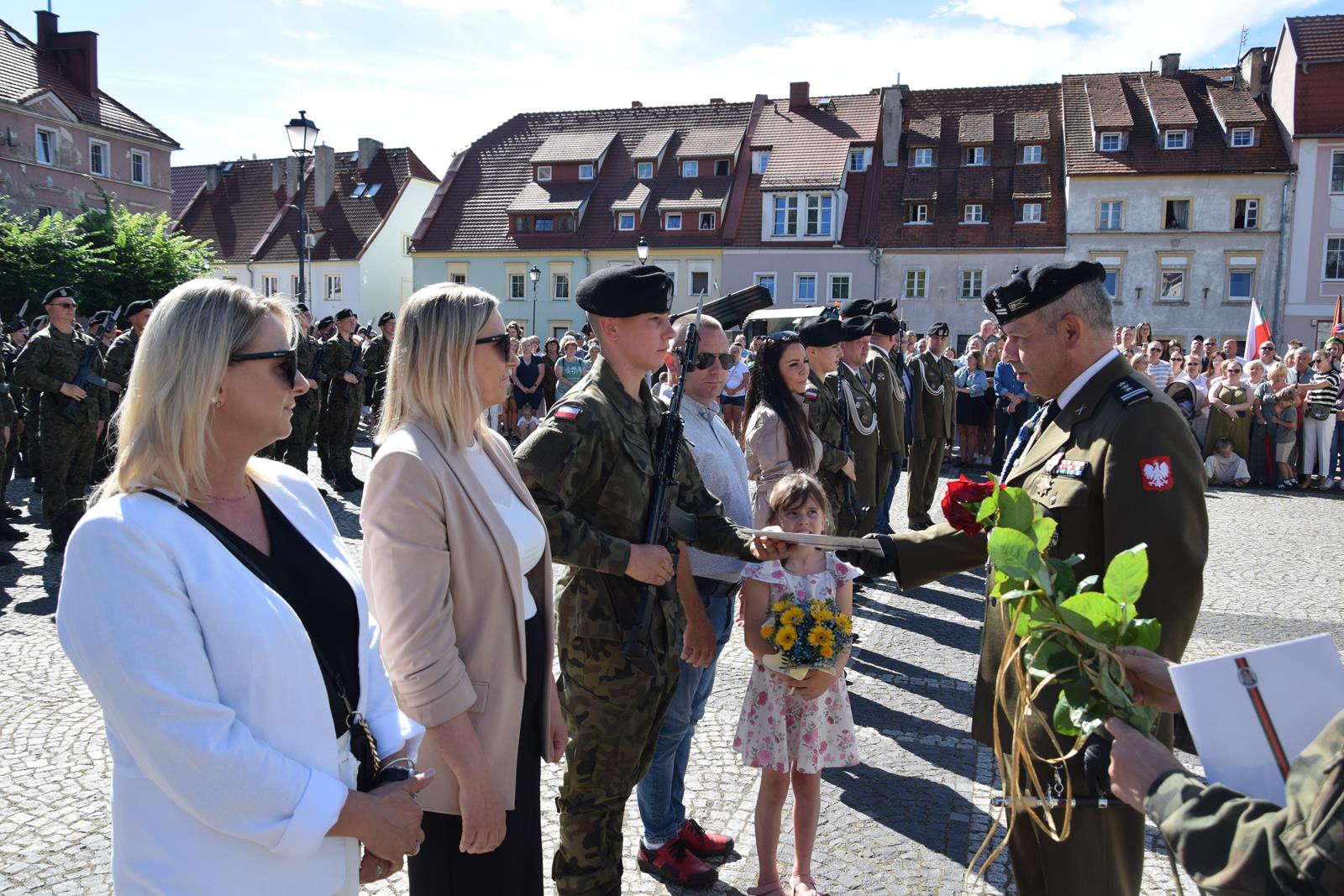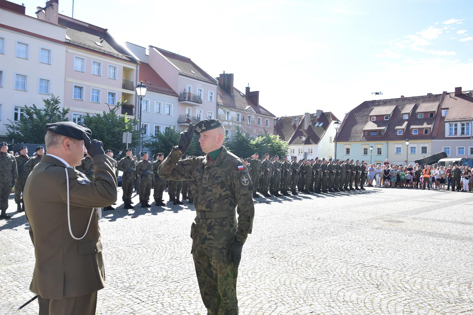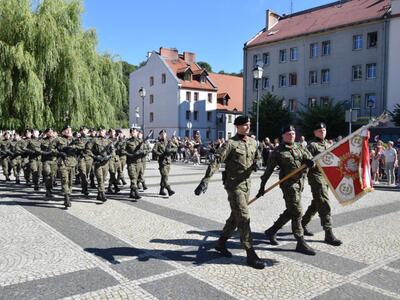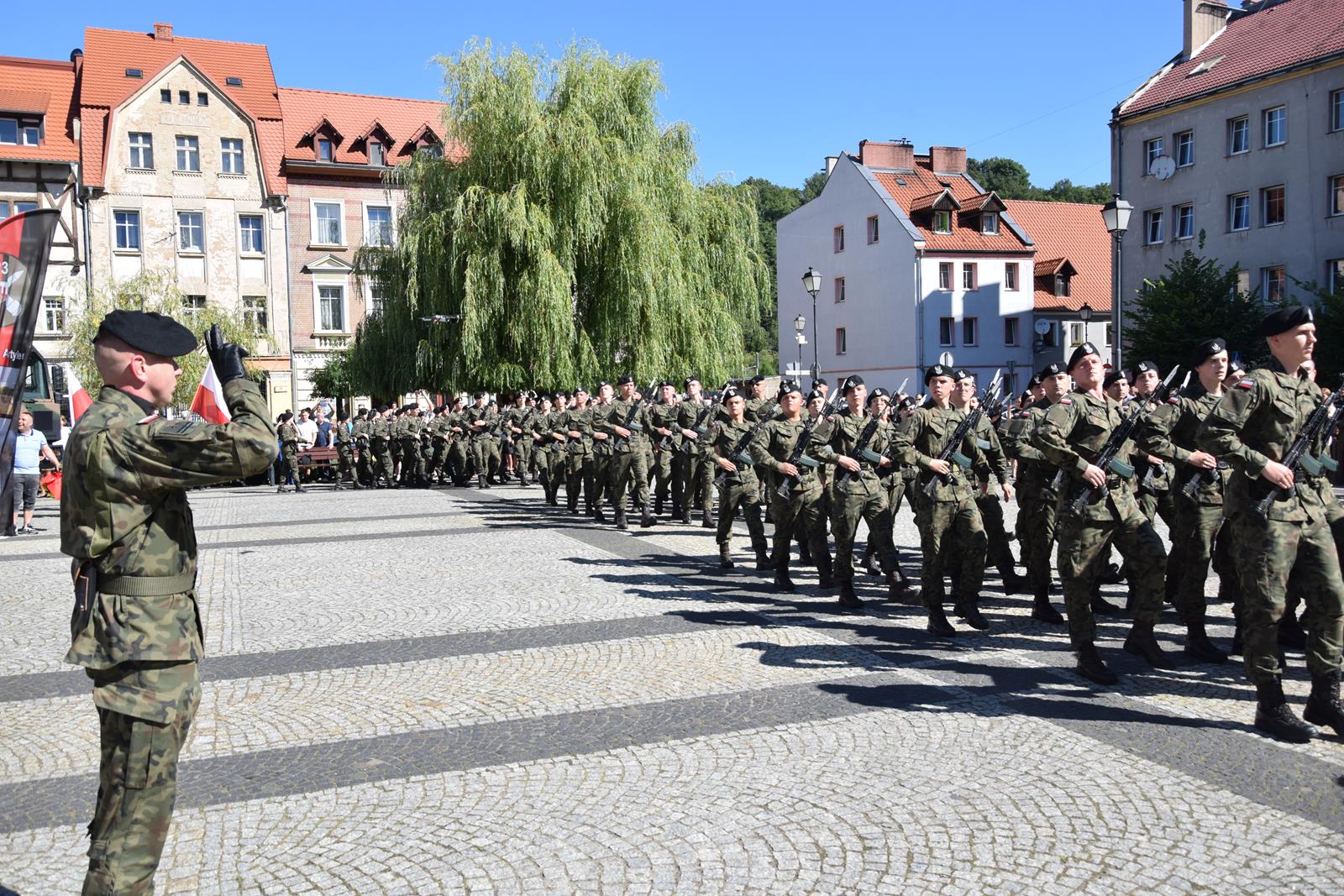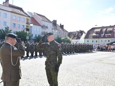 Po intensywnym okresie podstawowego szkolenia – pierwsza ważna uroczystość – uroczysta przysięga wojskowa. W dniu dzisiejszym 6 lipca na rynku miejskim we Wleniu w obecności zaproszonych gości, rodziców i przyjaciół 66 elewów dobrowolnej zasadniczej służby wojskowej piątego tegorocznego turnusu zostało pełnoprawnymi kandydatami na żołnierza zawodowego. Jest to niewątpliwie jedno z najważniejszych wydarzeń w życiu każdego żołnierza.
